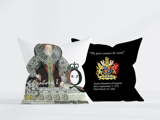 Queen Elizabeth Pillow Black Back 18x18