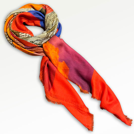 Queen Elizabeth II Floral Stamp Silk Modal Scarf