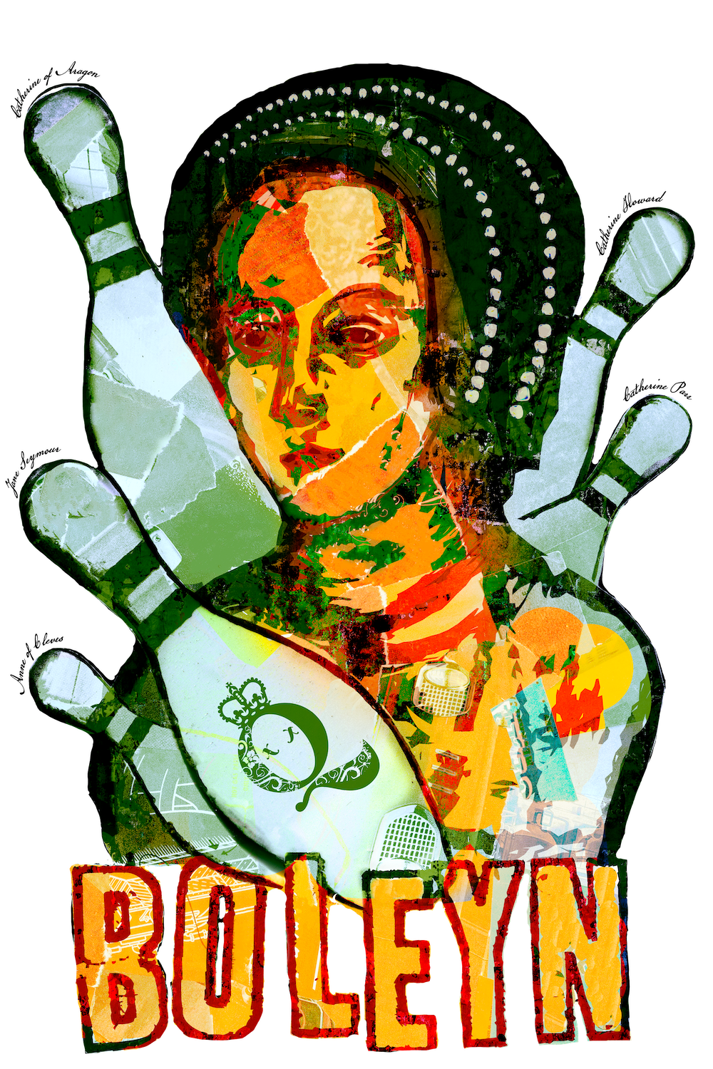- Front: Anne Boleyn art work + Henry's 5 other wives names wrapped around the pins