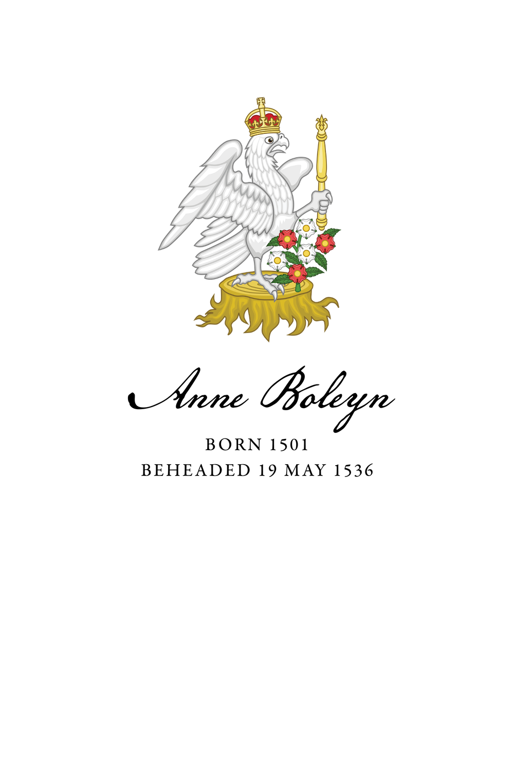 - Back Art: White Falcon badge with Anne's birth & beheaded date