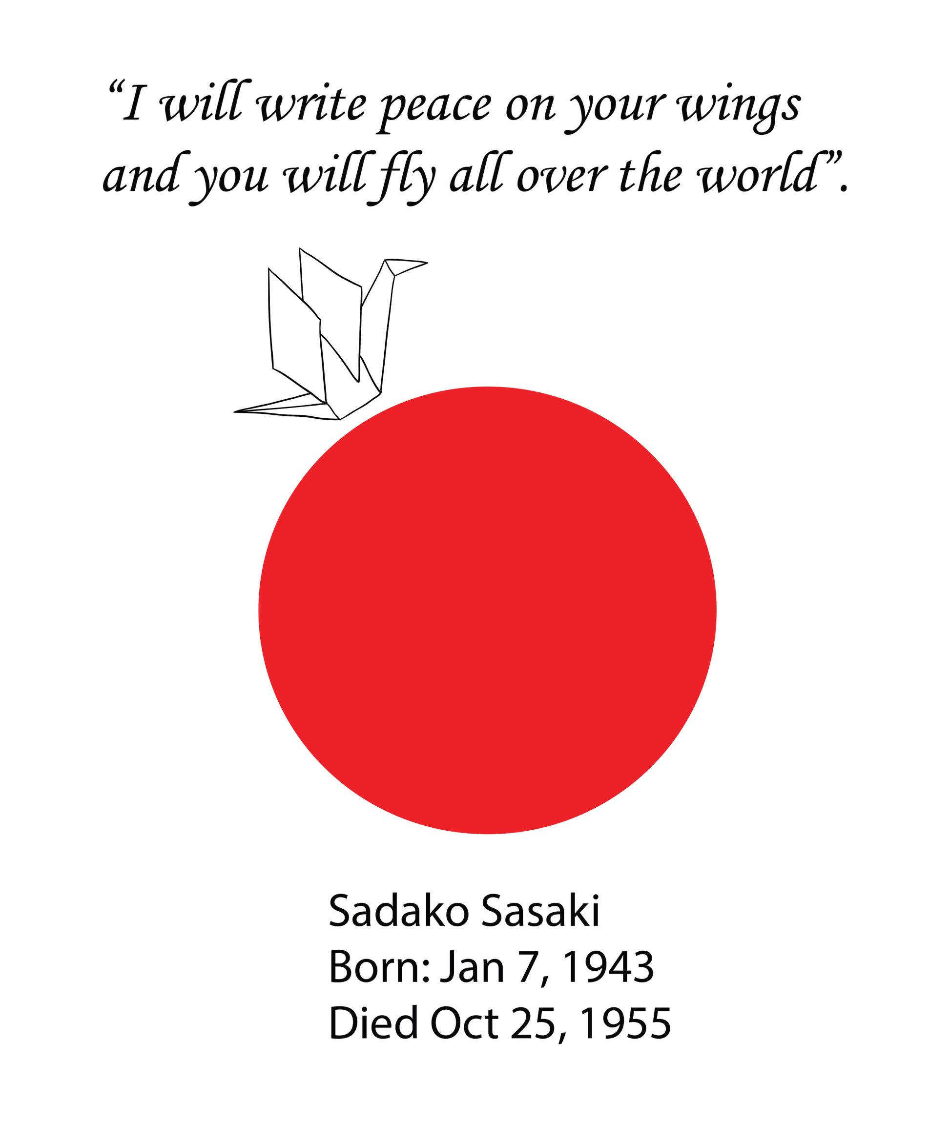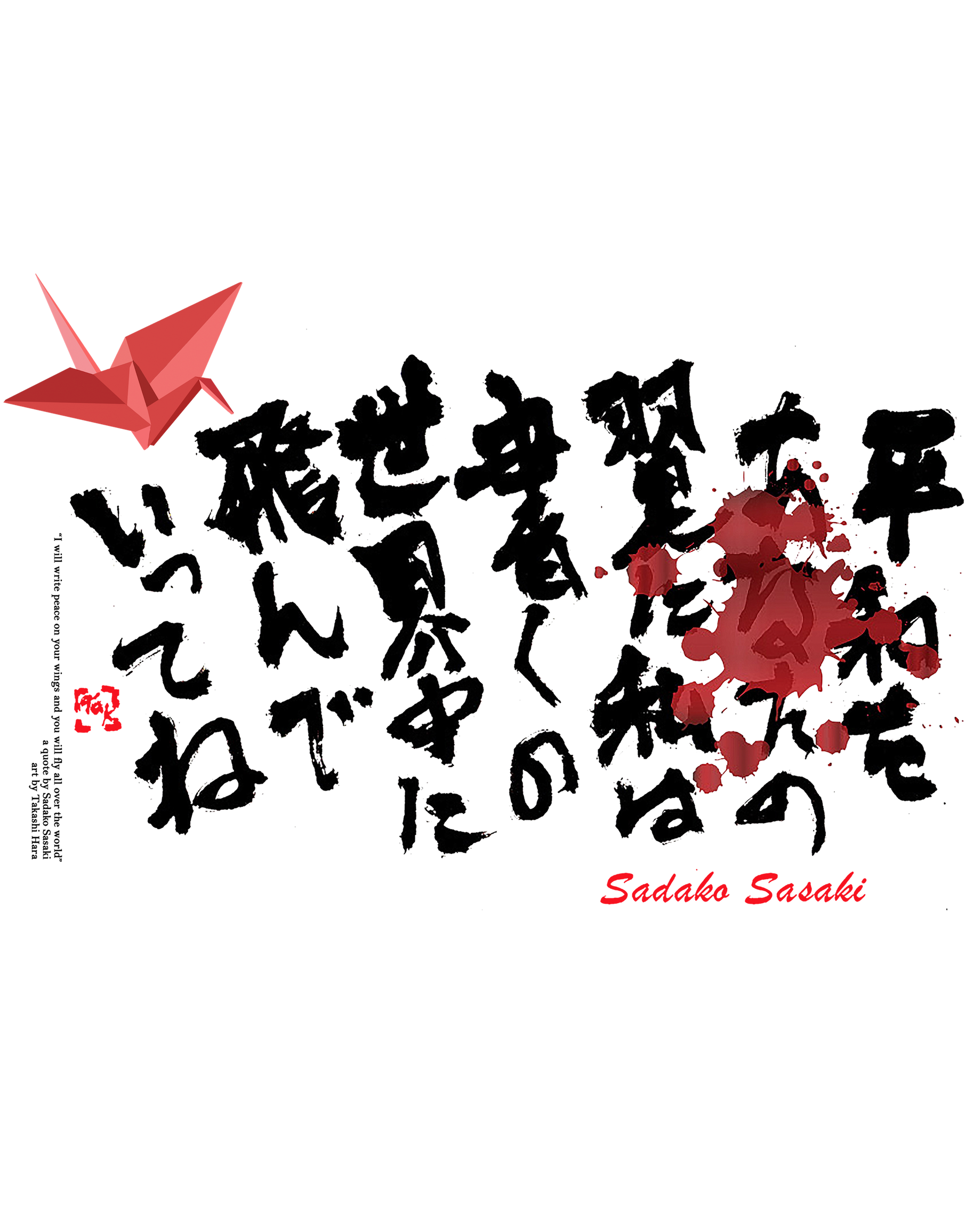 - Front: Original Japanese caligraphy art of Sadako Sasaki's famous quote